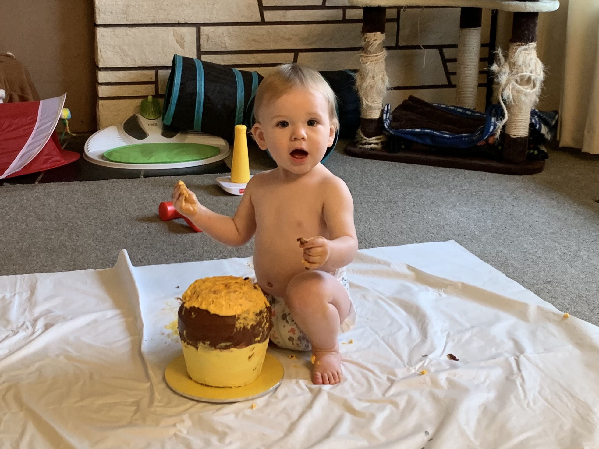 I gots two feet, two hands, long hair. I’m 10 months old without a care.